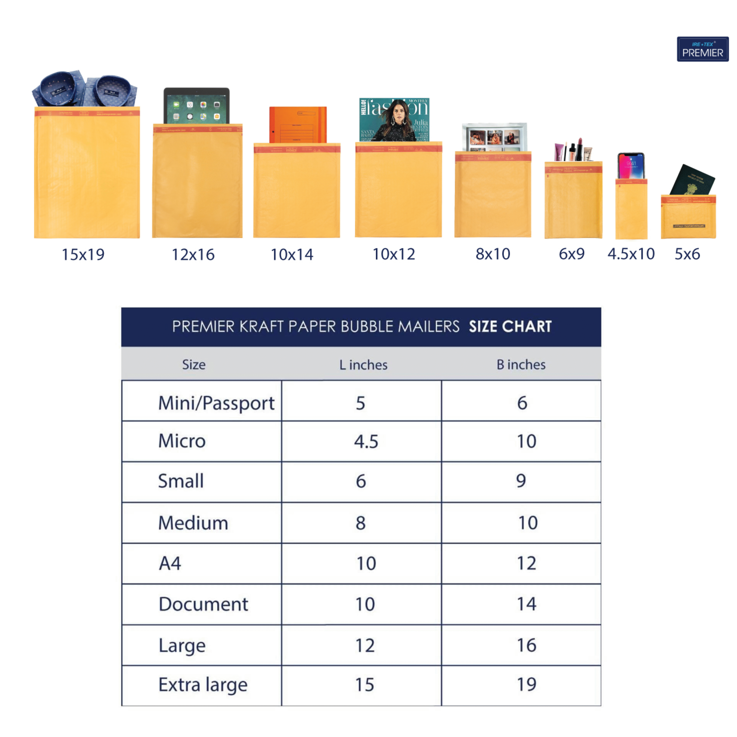 Kraft Paper bubble mailers provide the durability necessary for the implementation of a sturdy kraft paper exterior and bubble lining inside the mailer for moving, shipping or packing books, electronics, and accessories to ensure protection from shocks, scratches or some exposure to moisture.